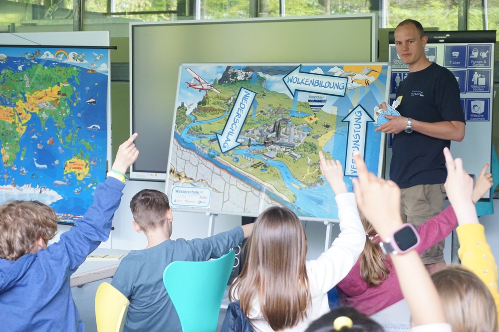 Wie wird Grundwasser zu Trinkwasser, wie kommt das in den Wasserhahn und warum bedeutet Leitungswasser trinken auch gleichzeitig unser Klima schützen? Diesen und anderen Fragen rund um unser wichtigstes Lebensmittel geht ihr gemeinsam mit unseren Wasserschul-Expert*innen auf den Grund. Mit anschaulichen Experimenten, Filmen und Spielen wird deutlich, wie ein Wasserwerk funktioniert und auch sonst wird jede Menge Wasser-Wissens-Durst gestillt.