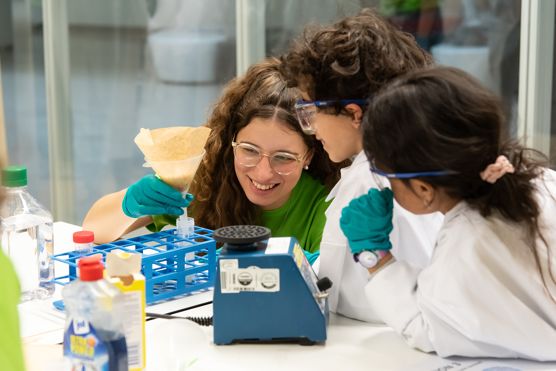 Während des Workshops können die Kinder ihre eigenen Zellen aus der Mundschleimhaut unter dem Mikroskop untersuchen und mit Pflanzenzellen vergleichen sowie verschiedene Gewebe und ihre Zelltypen unter dem Mikroskop betrachten. Außerdem greifen sie selbst zur Pipette und können erleben, wie es sich anfühlt, eine Forscher:in zu sein.